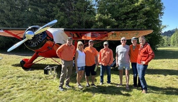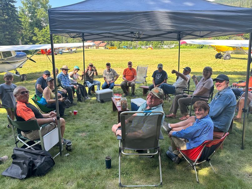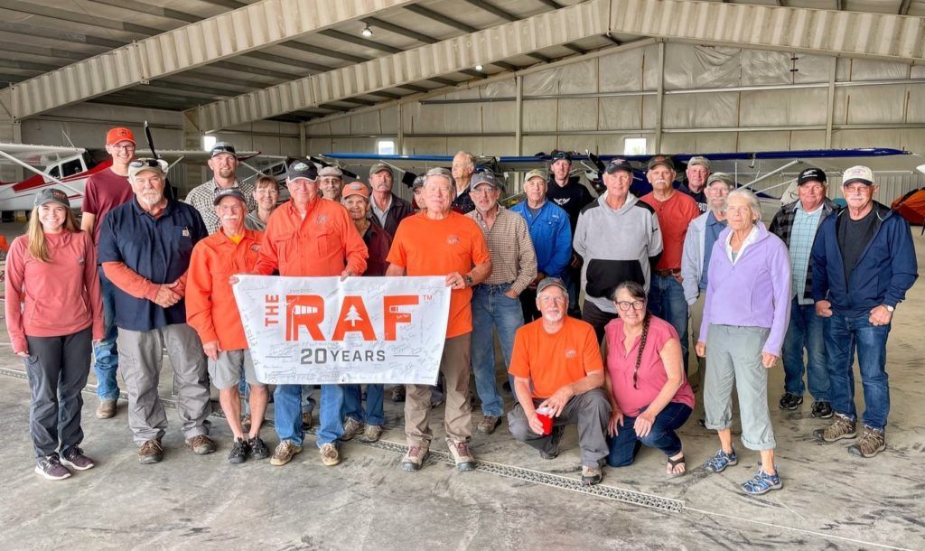 Katama, MA attendees enjoyed underwing camping at the airfield for the first time in years. Folks at Winifred, MT enjoyed group dinners each night and daytime flying to explore the six airstrips in the vast Missouri River Breaks that the RAF helped preserve. In Cornucopia, WI, RAF supporters hiked to a waterfall and delighted in a classic Wisconsin fish fry. At Ryan Field, MT, RAF volunteers gathered for a special dedication of one of the newest camper cabins, donated by WY supporter Joe Feiler.