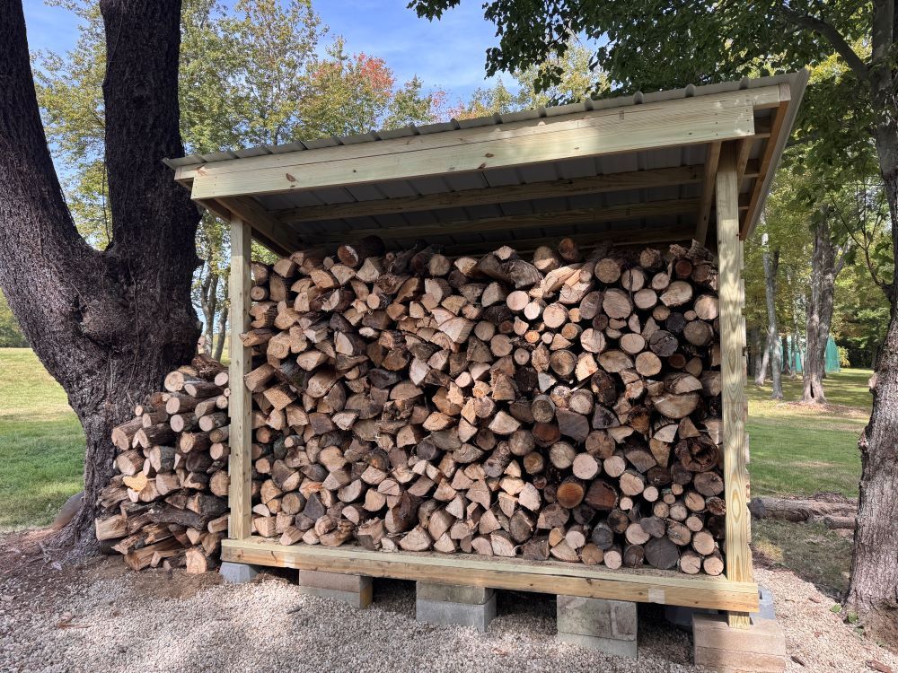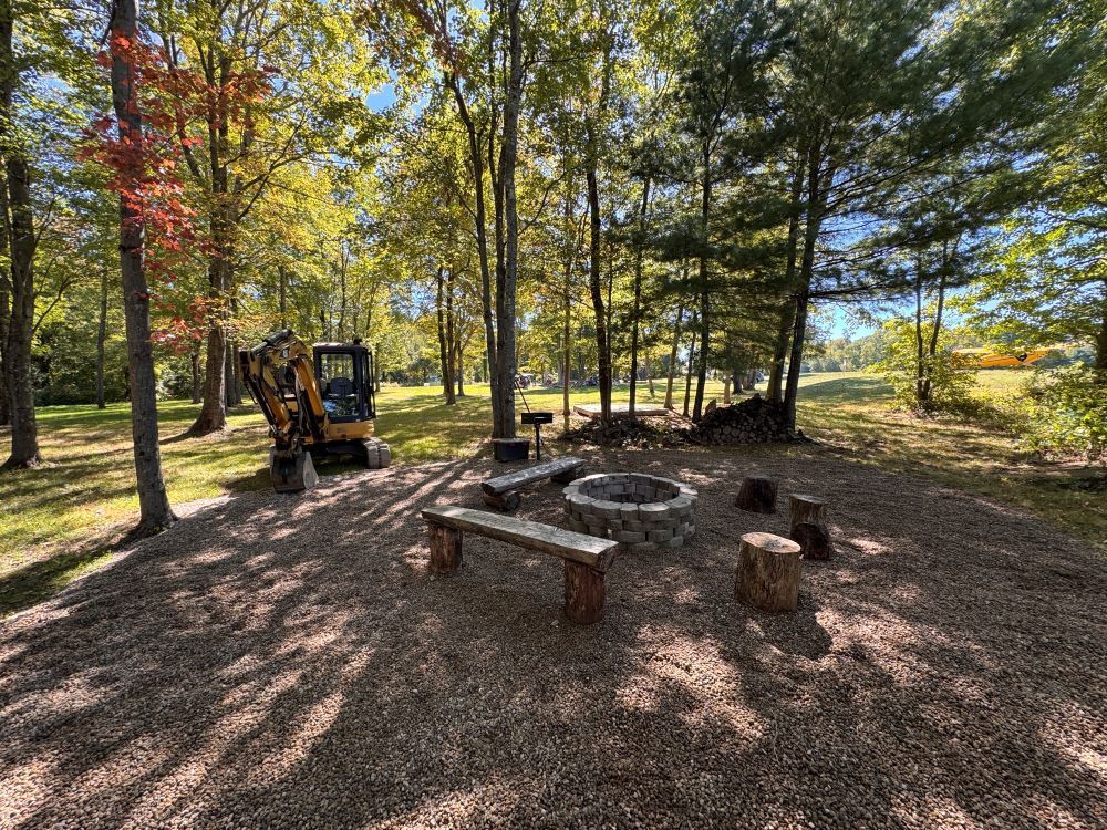 The 14 dedicated volunteers spread 15 tons of stone around a second fire pit, built a firewood shed and cut, split, and filled it with nearly two cords of wood. They removed ten trees and cleared a large section of brush from the runway border. “This work party was one hundred percent funded by money raised during our Annual Mount Toberfest Fly-In,” Thomas emphasized.