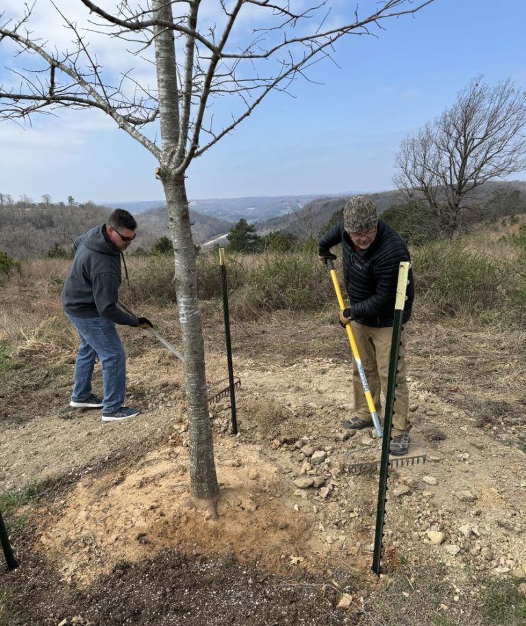 VOLUNTEERS TEND NEW SHADE TREES AT TRIGGER GAP
